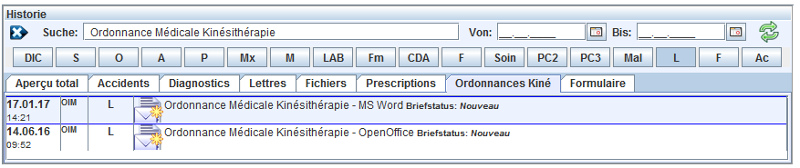 I. e., here you can see how a custom filter for the new “Ordonnances Médicales Kinésithérapie” would look like: